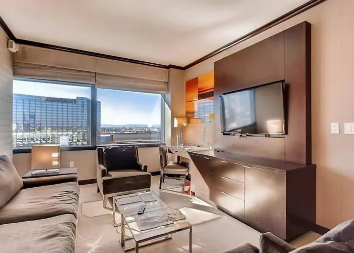 O Perfect - Lux 1Br Suite At Vdara Las Vegas de 1 quartos está situado a uma distância aproximada de 5 minutos a pé de Spa & Salon Vdara e inclui centro de fitness. Este apartamento com jacuzzi e sauna está nas proximidades de de The Cosmopolitan Resort e Casino.